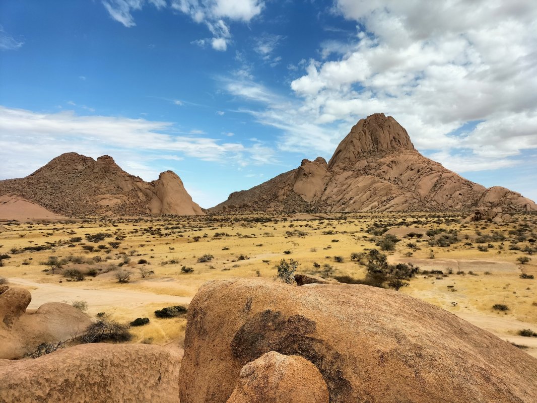 on un tragitto di circa 3 ore (260 Km) verso Sud-Ovest vi inoltrerete nella selvaggia Damaraland, alla scoperta di magnifici panorami e formazioni rocciose. Durante il tragitto vi fermerete nei pressi della cittadina di Kamanjab per visitare un tradizionale villaggio della particolare popolazione Himba, gruppo di pastori nomadi famosi per l’usanza di spalmarsi la pelle con una crema tradizionale di burro color ocra ed erbe per proteggersi dal sole e come repellente degli insetti. Arrivo a destinazione previsto per pranzo. Nel pomeriggio visiterete la vicina Twyfelfontein, patrimonio mondiale dell’UNESCO, una delle più estese gallerie di arte rupestre su pietra arenaria dei popoli primitivi, i boscimani (attuale popolo San). Rientro al lodge previsto nel tardo pomeriggio, in tempo per godersi il tramonto prima di cena.