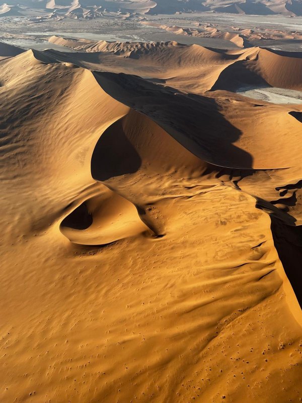 Giornata dedicata alla visita con la vostra guida delle dune più famose al mondo…Sossuvlei, un’enorme pozza d’acqua effimera in secca circondata da dune di sabbia rossa, come la duna 45 (la più fotografata al mondo) e la Big Daddy (che con i suoi 390 m rappresenta la duna più alta al mondo). Qui potrete divertirvi a scalare le fantastiche dune e rotolarvici in discesa, scoprire magnifici e surreali paesaggi, etc…. Sulla visita del ritorno non può di certo mancare una visita al caratteristico Sesriem Canyon.