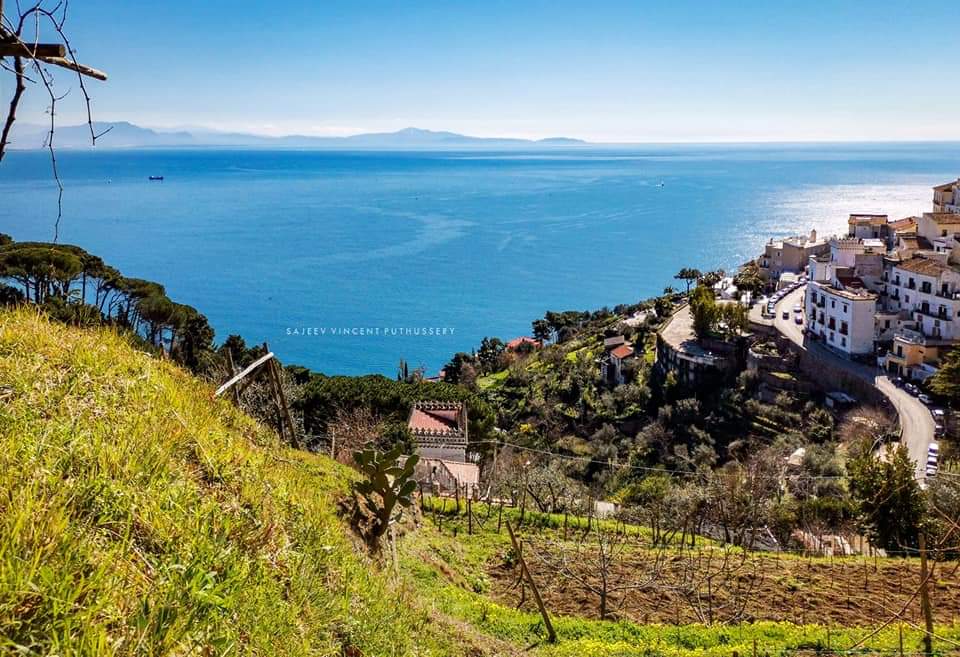 Superata via "maddonna dell'arco", giungeremo ad un attraversamento pedonale che taglia la statale amalfitana nei pressi del ristorante "Fish", località in cui, con forte pendenza, proseguiremo lungo una strada asfaltata che ci condurrà nel cuore dell'itinerario. La salita, seppur a strappi, prosegue costante e gli scenari ora, iniziano ad aprirsi di più anche verso la Costiera tutta e verso le montagne dell'interno, offrendo cosi una panoramica sui Monti dell'Avvocata e delle zone interne.