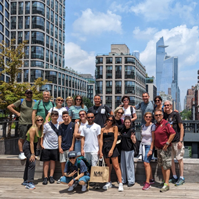 Cammineremo lungo la spettacolare High Line, ex ferrovia sopraelevata oggi trasformata in uno dei parchi urbani più belli del mondo.